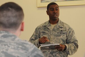 Airmen at Altus AFB participated in a basewide severe weather response exercise March 12, 2014. The exercise began with sheltering in place, where Airmen exercised locating designated shelters to stay until the simulated storm passed. Each squadron has a determined location that the Airmen will go