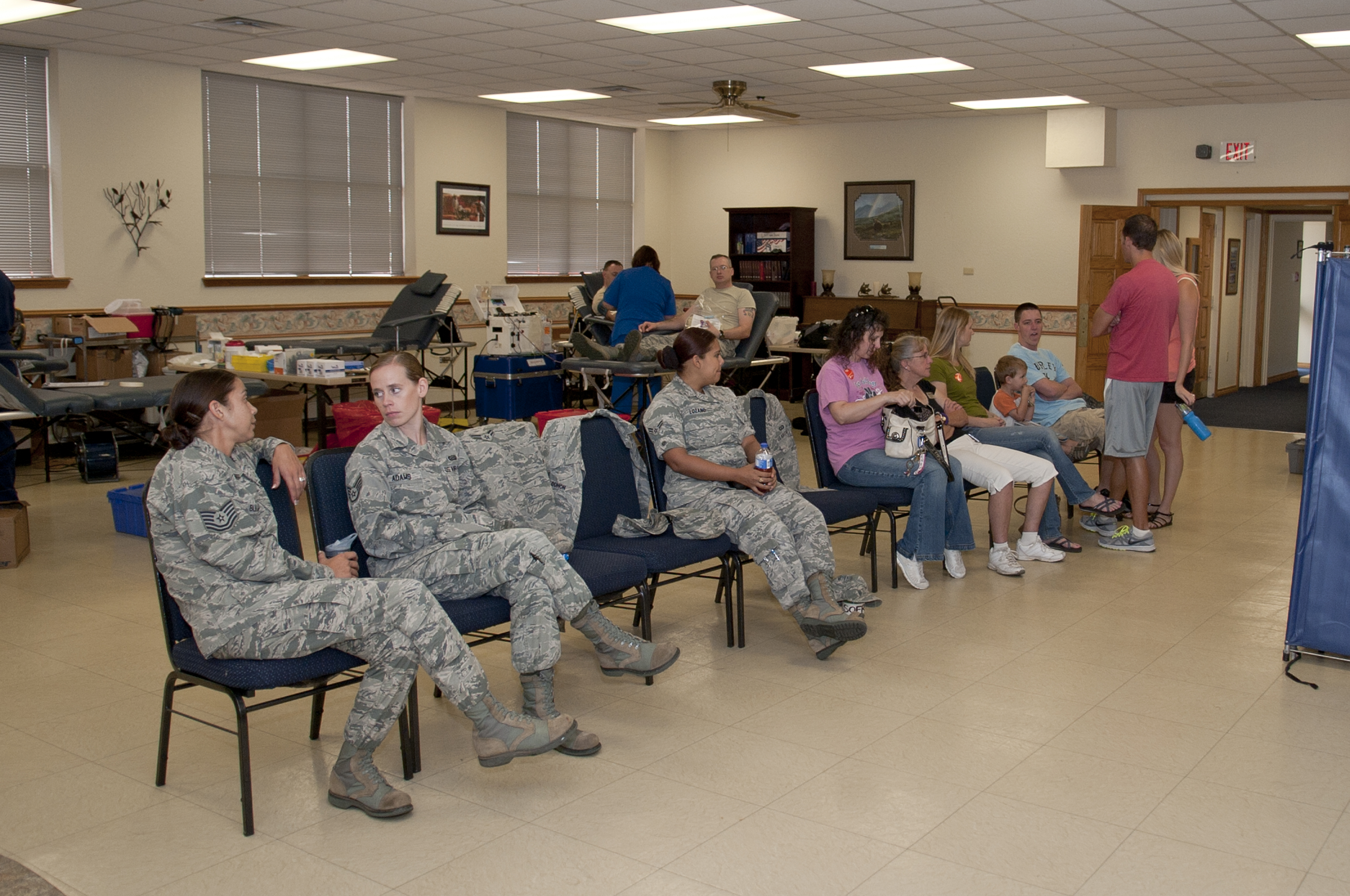 ALTUS AIR FORCE BASE, Okla. – Carol Demmel, Oklahoma Blood Institute phlebotomist, injects an intravenous needle into the arm of U.S. Air Force Staff Sgt. Jerome Duhan, 97th Communications Squadron systems administrator, during the Altus AFB blood drive inside the chapel activities room Sept. 27. Before the “sticking” process, the needle and point of puncture are sterilized to keep the donor from getting any infection. The Oklahoma Blood Institute is a local organization that collects and donates blood to more than 140 medical facilities in Oklahoma. (U.S. Air Force photo by Senior Airman Dillon Davis/Released)
