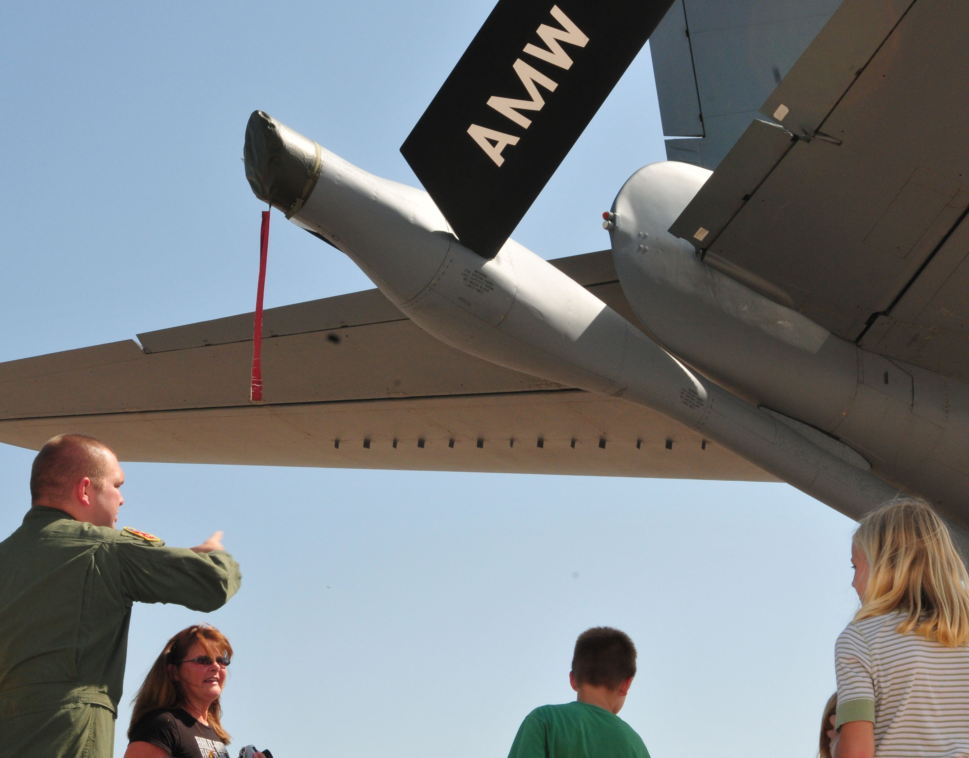 ALTUS AIR FORCE BASE, Okla.— Staff Sgt. Brandon Johnson, 54 Air Refueling Squadron, explains the configuration of the boom exterior on an Altus AFB KC-135 Stratotanker to a tour. The tour was organized by the “Voyage to Book Island” summer reading program sponsored by the library. For more information on the library, please go to http://altusfss.com/youth-family/library/ (U.S. Air Force photo by Tech. Sgt. Jennifer Seidl / Released 97th Air Mobility Wing)